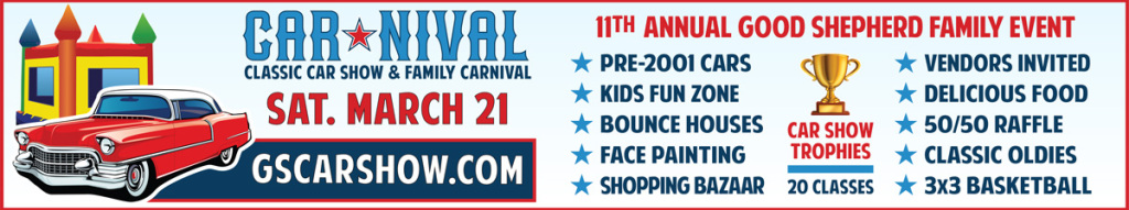 Join us for the 11th Annual Good Shepherd Classic Car Show on Saturday, March 21, 2026! Choose from 20 exciting vehicle classes and compete for a coveted Best in Class or Best in Show award.